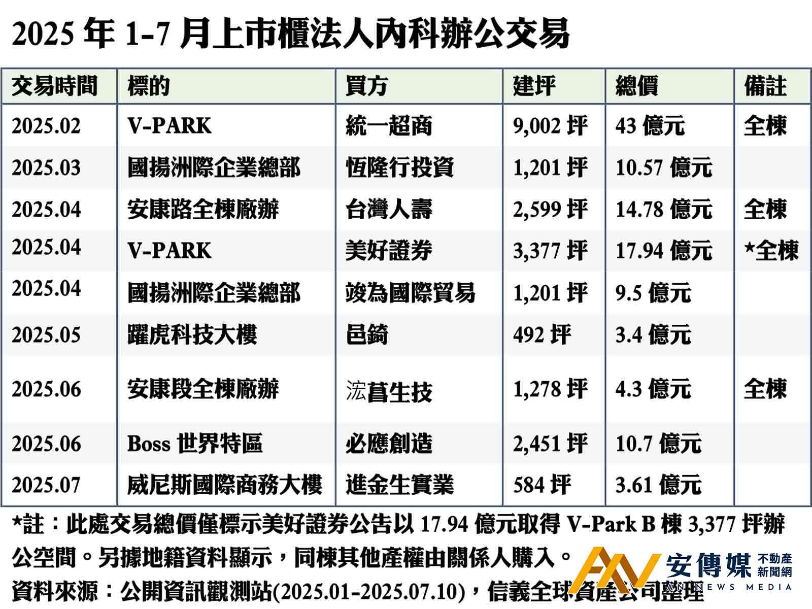 據信義全球資產公司統計,2025年1月至7月上市櫃法人購置內科辦公產品交易量達118億元,大幅超越2024全年的79億元,包括統一超商、恆隆行、必應創造等2025年都砸重金買樓,顯見國內廠商仍具備強勁的投資動能,且看好內科辦公市場進駐效益及資產增值潛力,積極進場尋覓投資標的。
