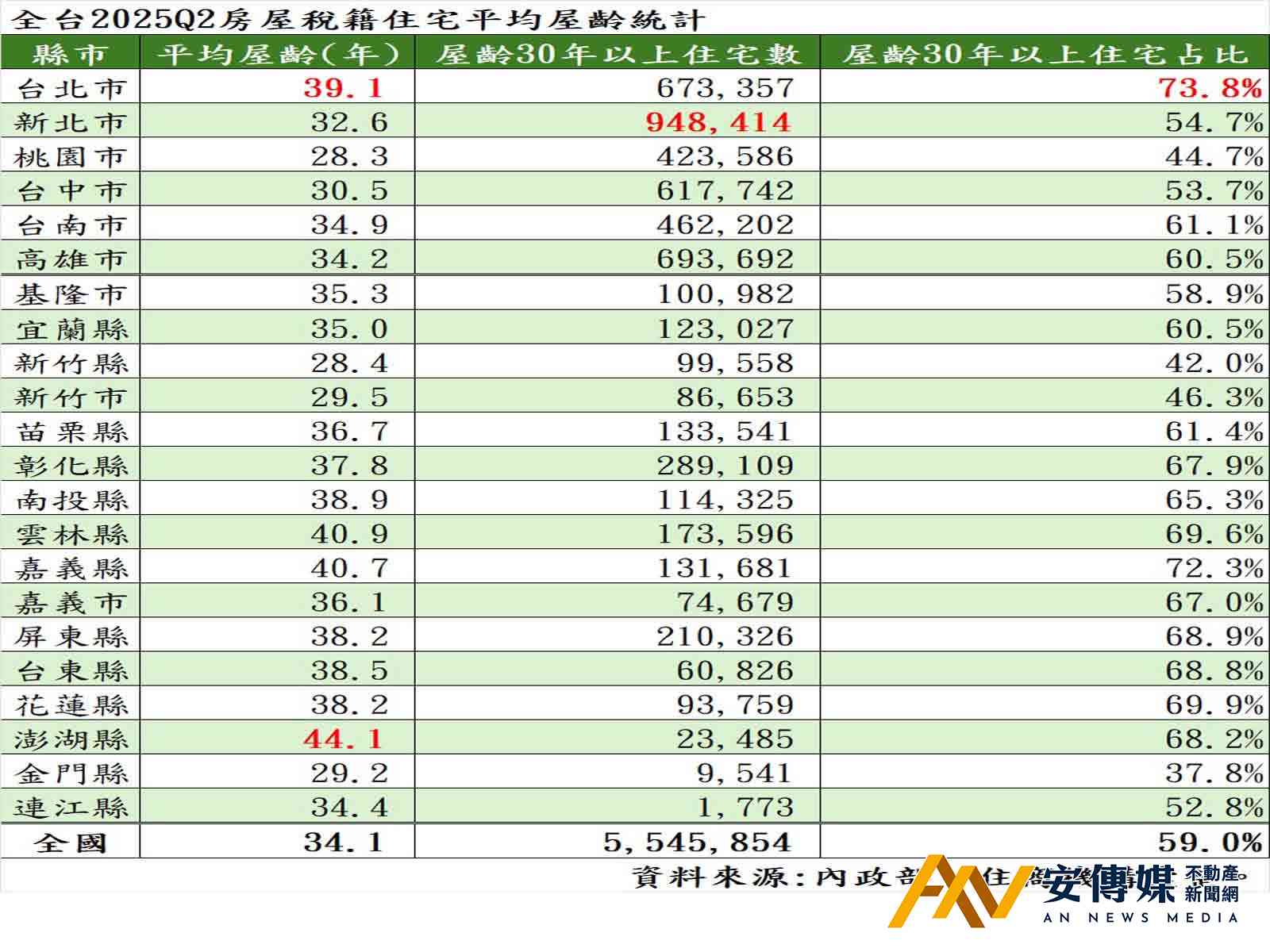 全台平均屋齡34.1年創新高,台北老宅占比逾7成全台居冠