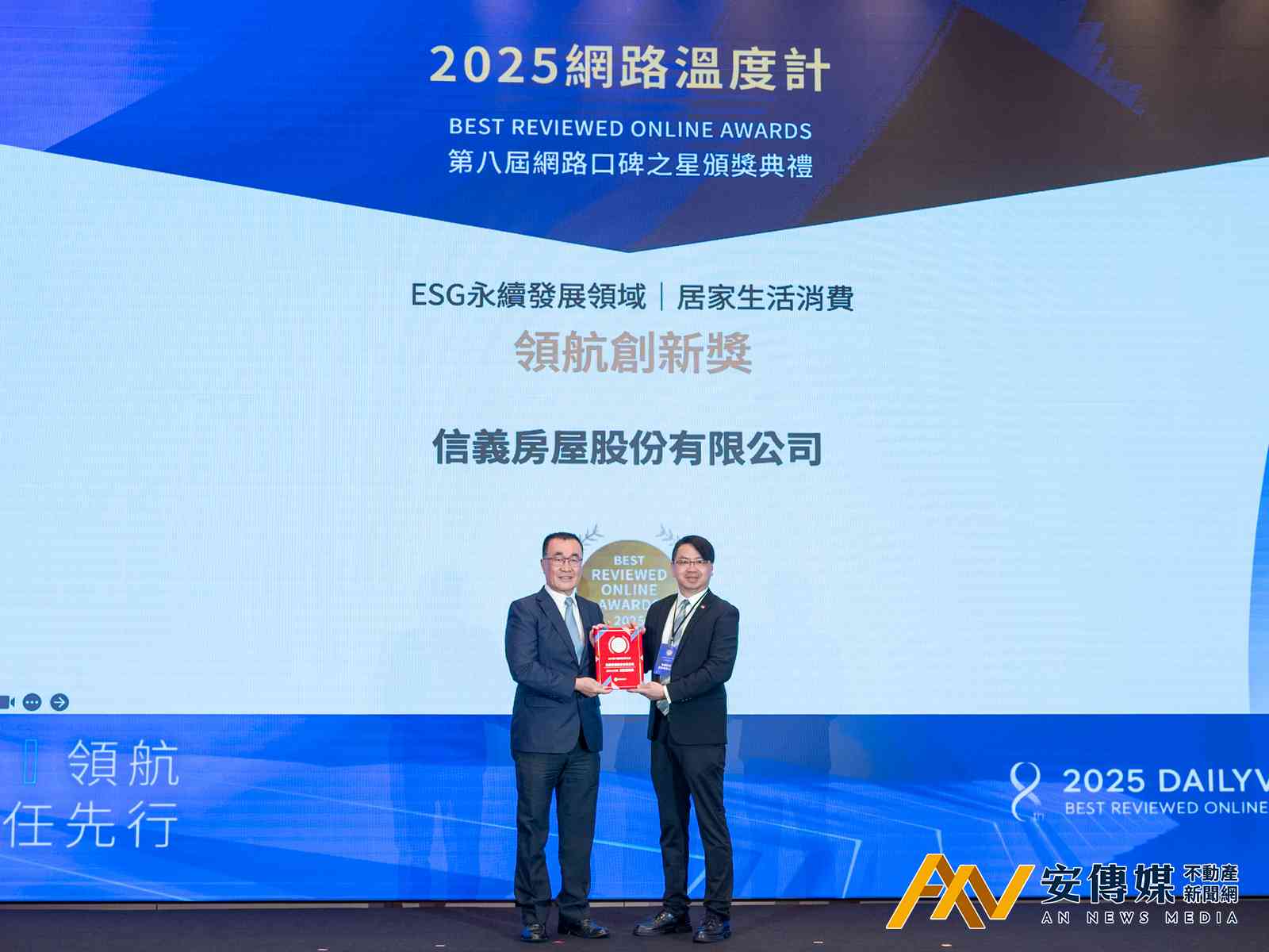 【AN不動產新聞網/蕭又安/綜合報導】2025年第八屆「網路口碑之星」頒獎典禮2025年10月21日登場,以「AI領航 信任先行」為主題,表彰在數位轉型與永續實踐上具代表性的企業典範。信義房屋從整體提升生活品質與便利性之居家產品、服務或整體解決方案的企業或產業中脫穎而出,榮獲「ESG永續發展領域居家生活消費類」領航創新獎,成為房仲業唯一獲獎品牌,展現誠信治理與社區行動的長期實力。