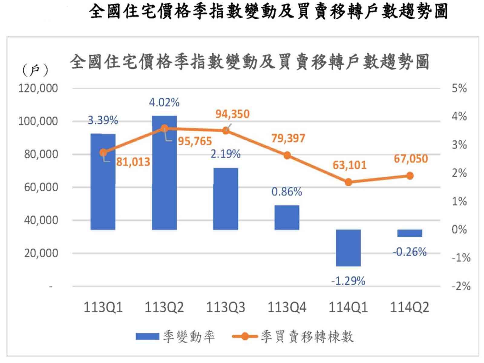 Home市場快訊內政部:Q2住宅價格指數較上季微跌0.26%