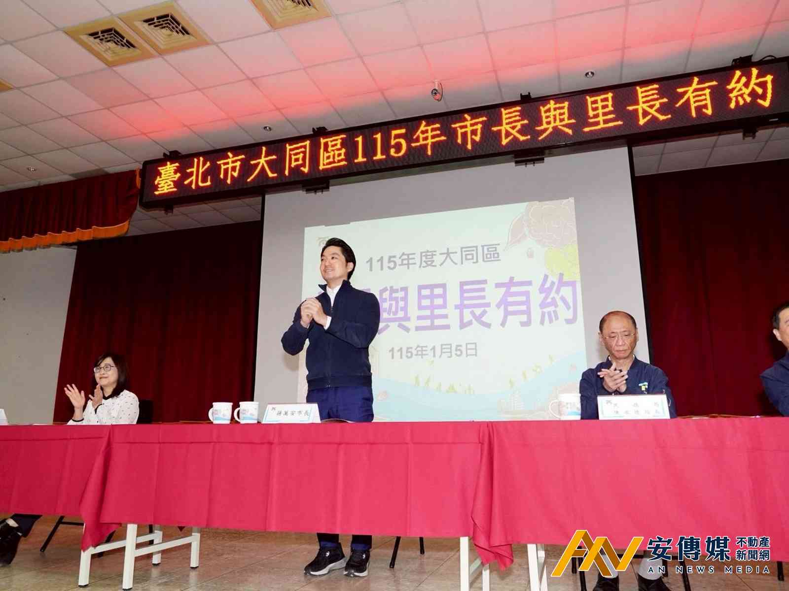 【AN不動產新聞網/劉怡霖/綜合報導】台北市長蔣萬安2026年1月5日出席大同區「與里長有約」座談。蔣萬安表示,大同區包括淡水河水岸空間改造、中興院區醫療大樓新建,以及大同、雙蓮國小校舍改建等多項建設都持續推動中。未來市府將持續與里長「站做伙、做伙拚」,讓大同區發展無可限量。