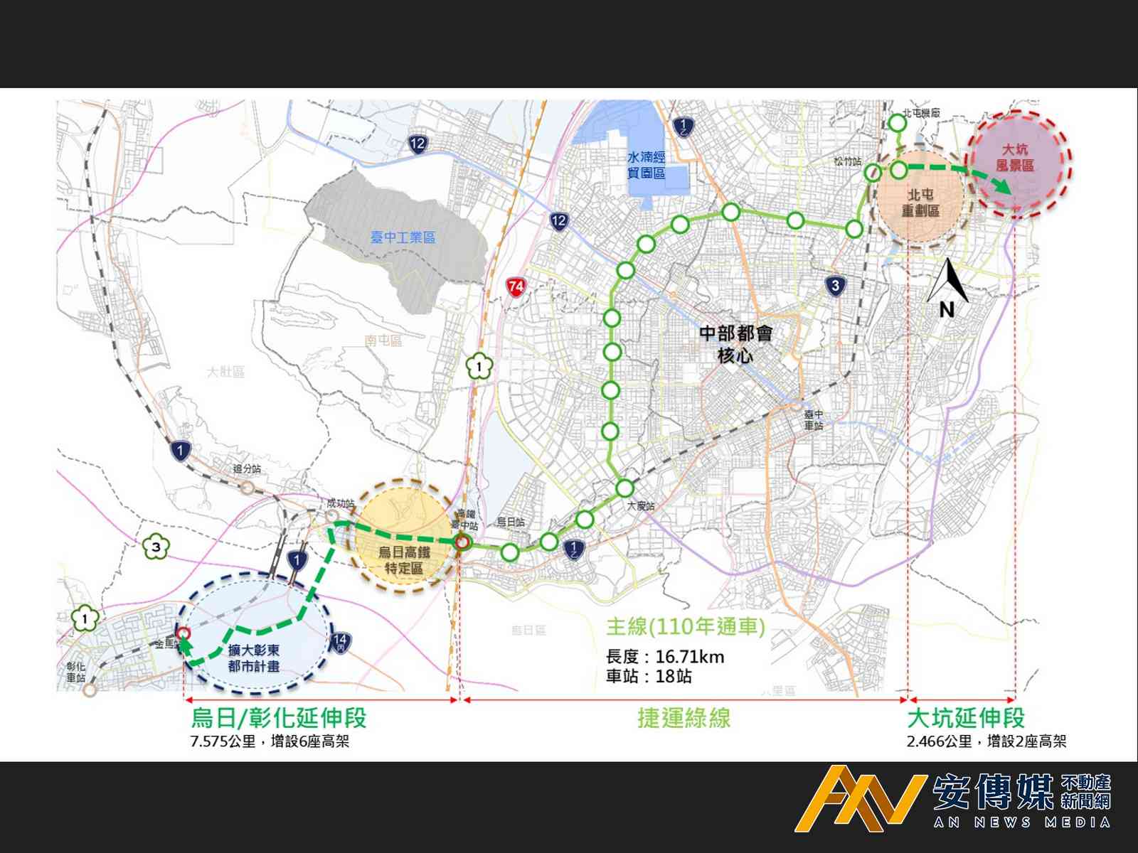 【AN不動產新聞網/劉怡霖/綜合報導】台中捷運綠線延伸大坑及彰化計畫再有重大進展!台中市政府2026年2月26日正式將「捷運綠線延伸大坑及彰化綜合規劃報告」提送交通部審議,後續將報請行政院核定,象徵中彰跨縣市軌道建設再邁出關鍵一步,加速推動區域交通整合。