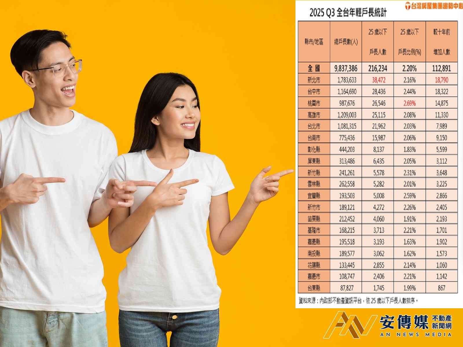 根據內政部2025年第三季的最新數據,全台983.7萬名戶長中,25歲以下的年輕戶長竟然高達21.6萬人!這個數字在短短10年內增加了11.2萬人,直接翻倍成長。難道現在的年輕人真的都這麼厲害,20出頭就能買房當老大?其實,故事的背後藏著4種截然不同的現代年輕人縮影。讓我們跟著以下3位20多歲年輕人的故事,一起看懂這個「戶長年輕化」的奇妙現象。