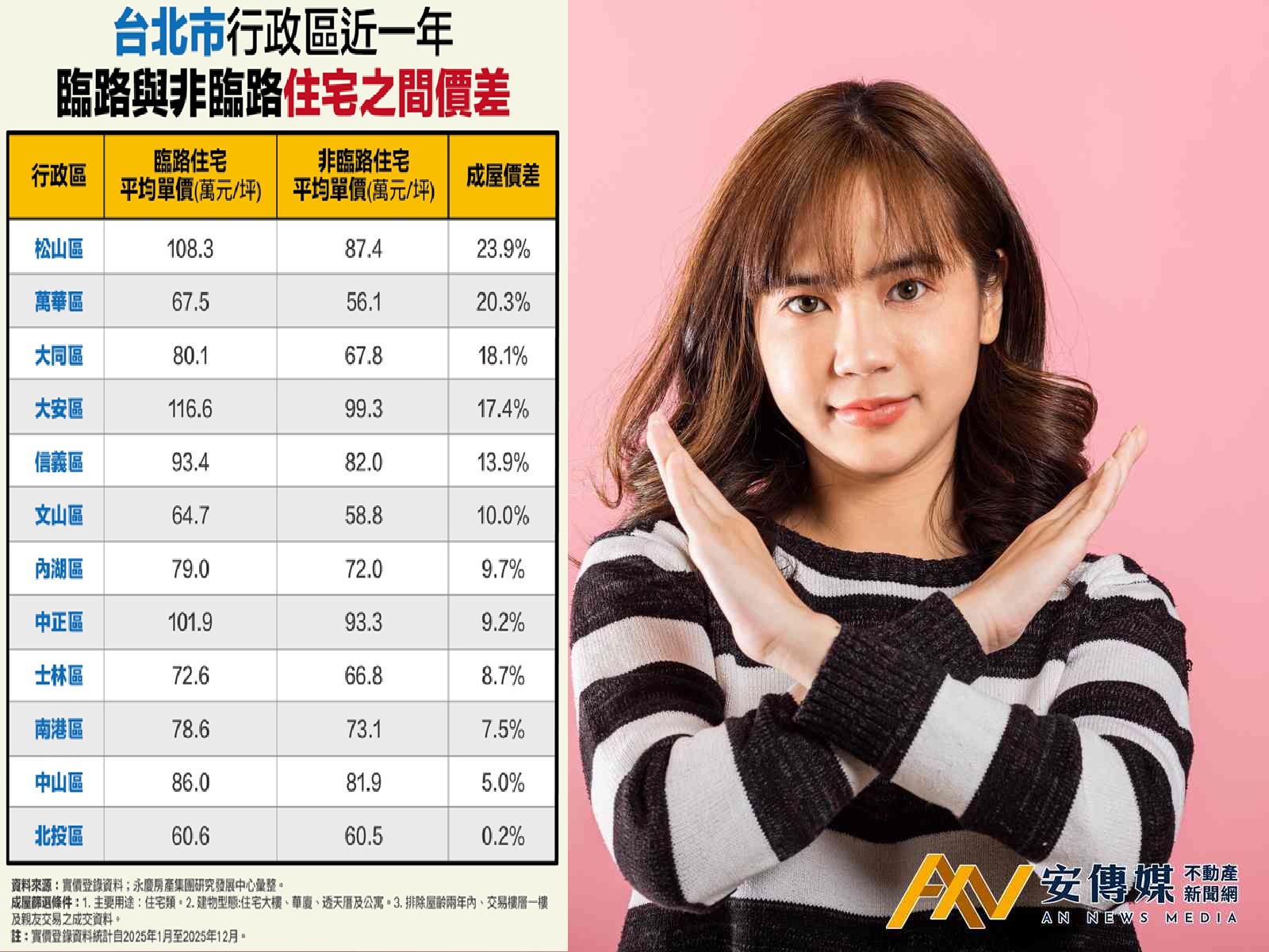 然而,這份對於「家」的選擇,不僅是生活姿態的展現,更在現實的房價行情上,刻劃出了鮮明的輪廓。當我們翻開永慶房屋透過實價登錄所整理的市調,那些關於台北市12個行政區「臨路住宅」與「非臨路(巷弄)住宅」的冷硬數據,其實正低語著台北人對於居住環境的真實渴望。